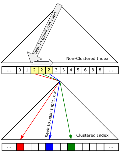 How does this relate to index seeks and bookmark lookups? Consider this query (using the above schema):