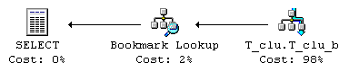 |–Bookmark Lookup(BOOKMARK:([Bmk1000]), OBJECT:([T_clu]))