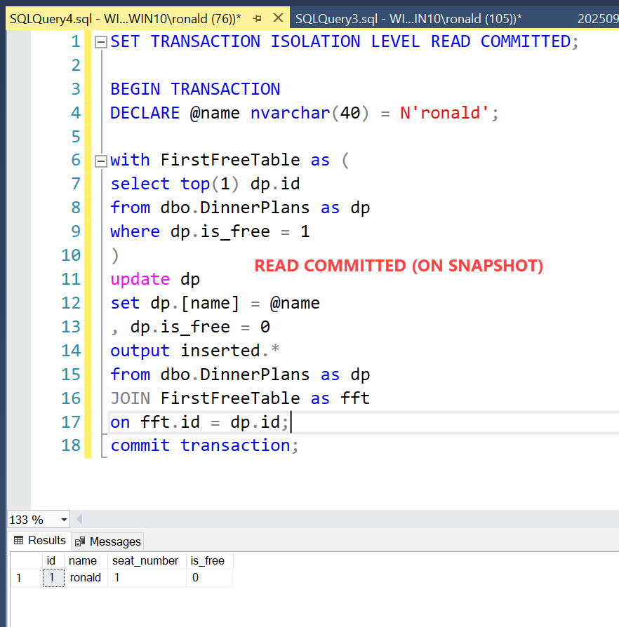 SET TRANSACTION ISOLATION LEVEL READ COMMITTED;